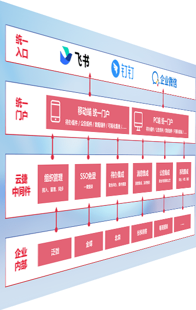 对协作平台提供支持服务,,支持企业应用与协作平台对接,,,,包含组织同步、、、、消息集成、、待办集成等。。。支持目前主流的协作平台:钉钉、、、企微和飞书。。。